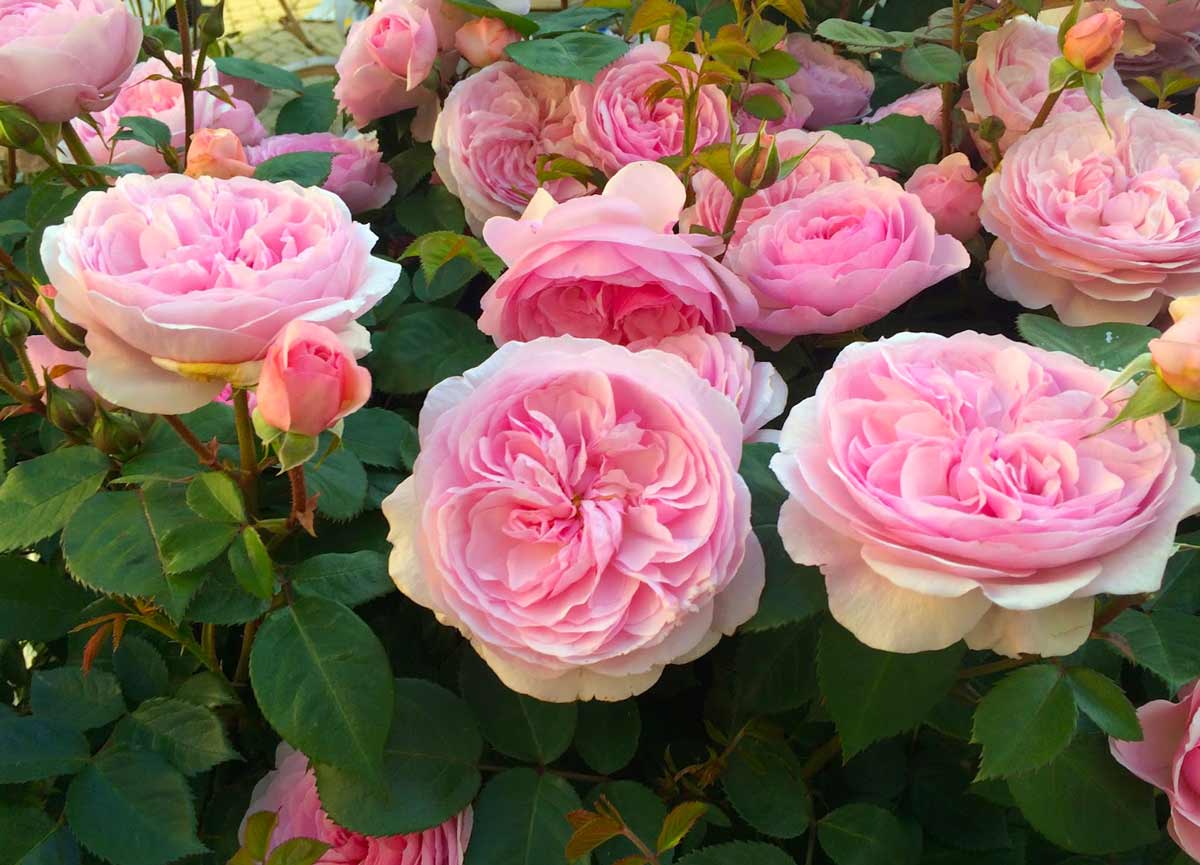 Его цветы настолько похожи на пион, что иногда только характерная форма ярко зеленых листьев помогает отличить сорт розы «Peony Magic» от других растений.