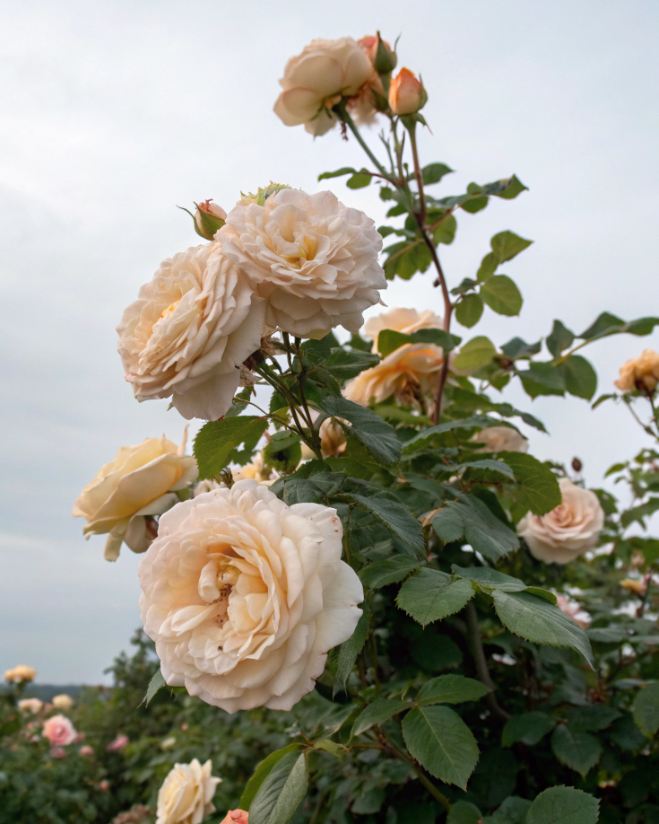 Редкий сорт с нежно-сливочным цветом и легким ароматом лимона. Идеален для роскошных композиций и выставочных садов.